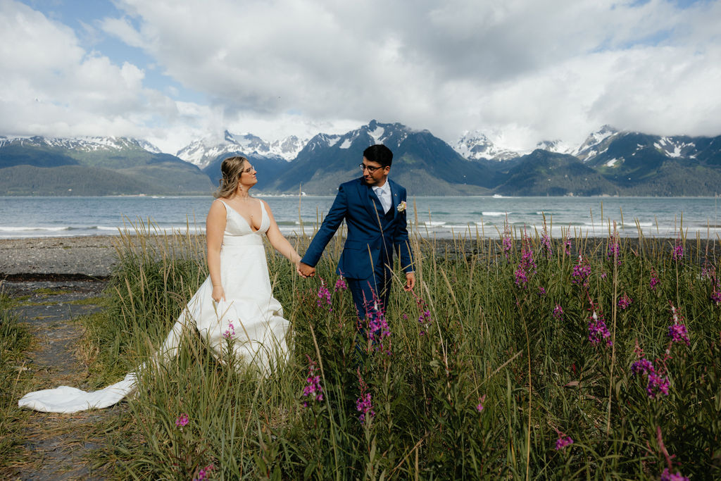 Rugged shorelines, misty fjords, and moody ocean views add a cinematic feel to Alaska elopements. Imagine seeing a pod of orcas on your wedding day!!!